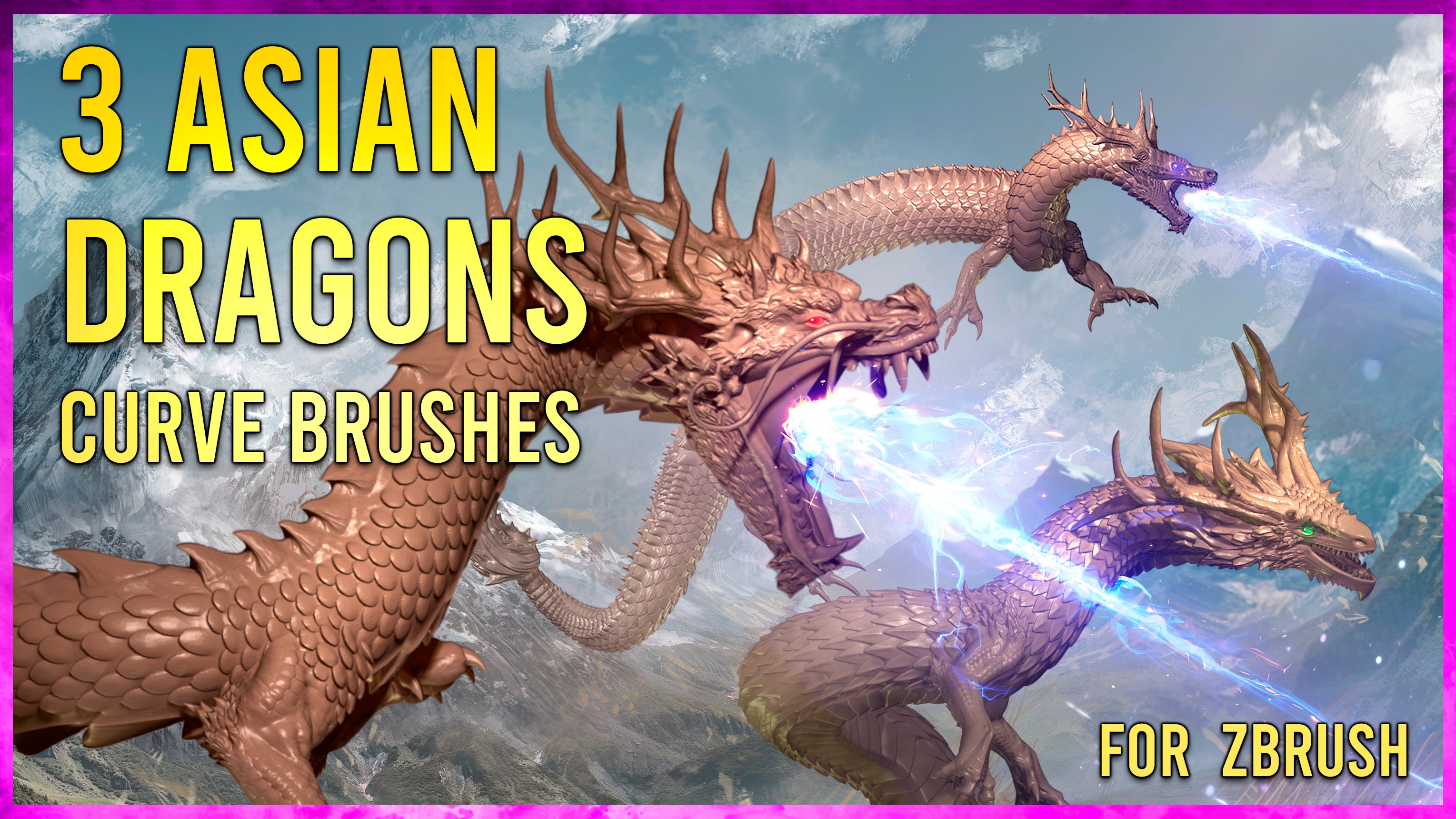 3 Asian Dragons curve brushes for Zbrush