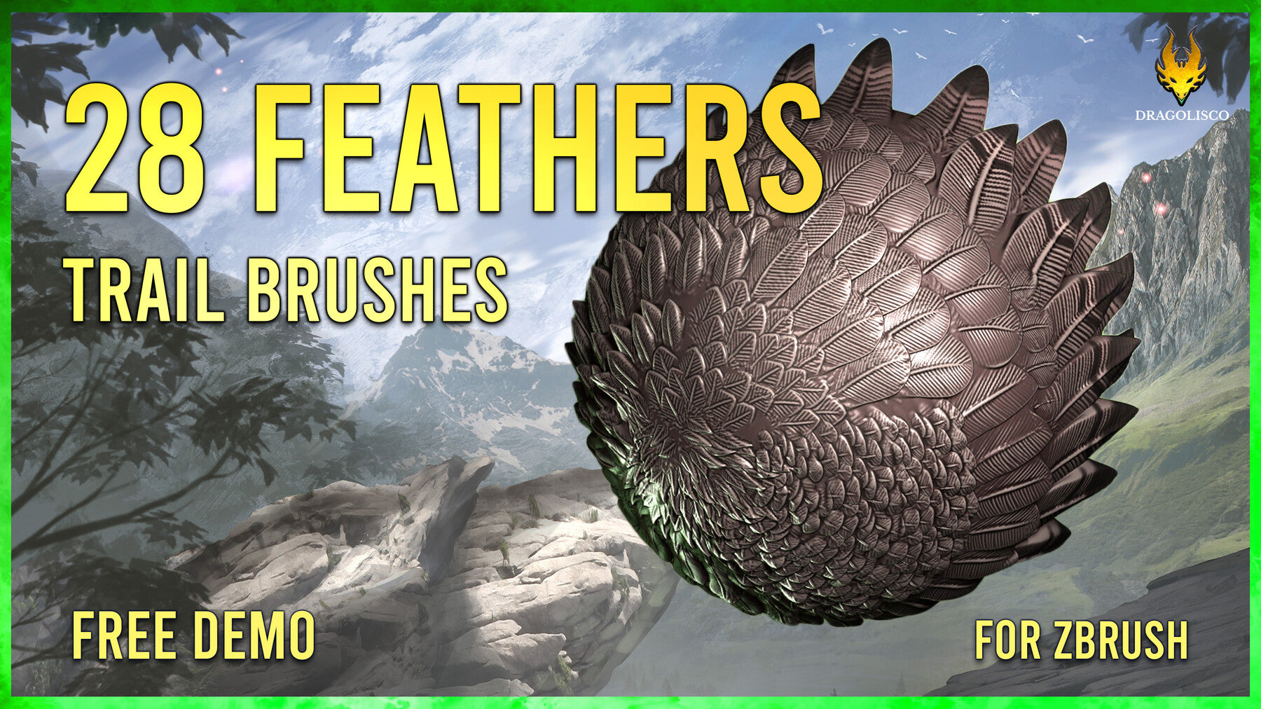 28 pinceles Trail Feathers para Zbrush para dragones y dinosaurios
